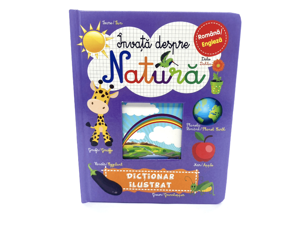 Cartea “Invata despre Natura – Romana / Engleza” reprezinta o introducere perfecta a copiilor in lumea fenomenelor naturale, a spectacolelor oferite de Natura. Totodata, cartea reprezinta un mijloc excelent de a incepe invatarea si practicarea limbii engleze si de a-i ajuta pe cei mici sa isi dezvolte un vocabular bogat.