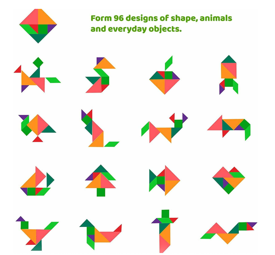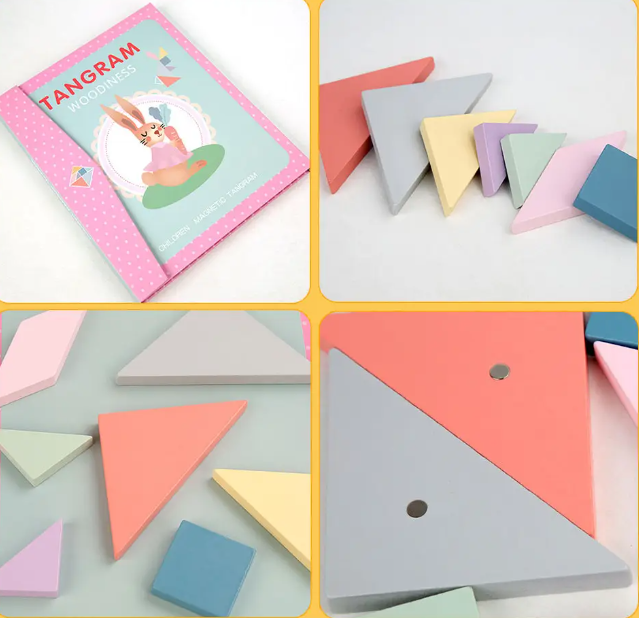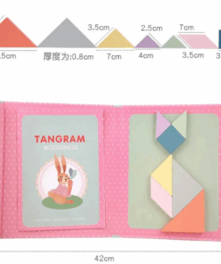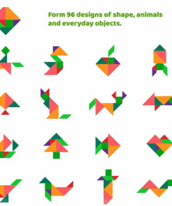 - 7 piese tangram din lemn (7 culori , 7 forme),