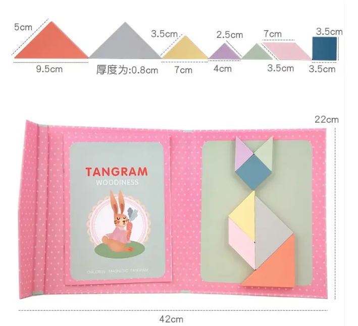 Aceasta carte educativa, magnetica, tip puzzle tangram va incurajeaza sa va jucati impreuna cu micul invatacel.