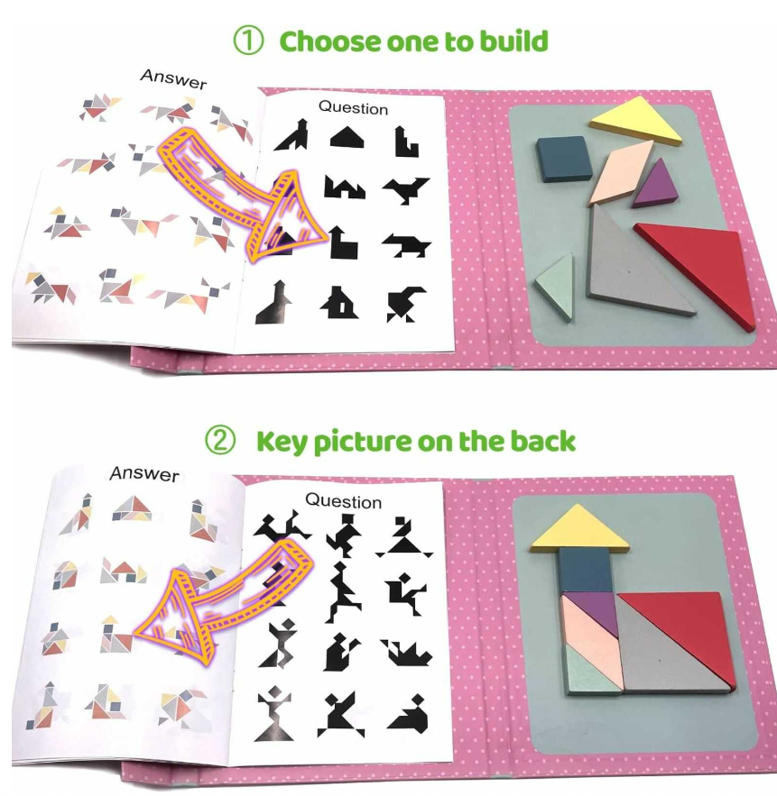 Carte magnetica tip tangram cu 7 piese, 96 modele, 3 ani