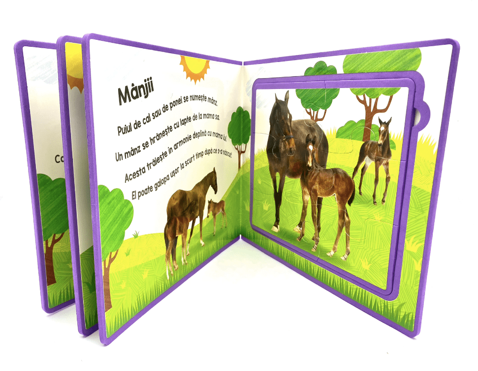 Veti putea reconstrui impreuna cu cei mici puzzle-urile, iar acestia vor invata despre cai si ponei.