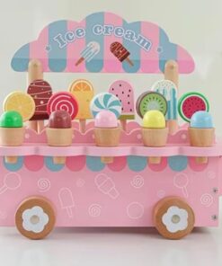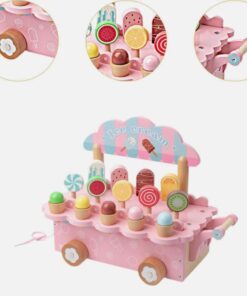 Transformați joaca micuțului într-o experiență plină de culoare și imaginație cu acest Stand de înghețată din lemn! Un design atractiv și o varietate de accesorii îi permit copilului să creeze propriile „comenzi” de înghețată, dezvoltând în același timp abilități esențiale.