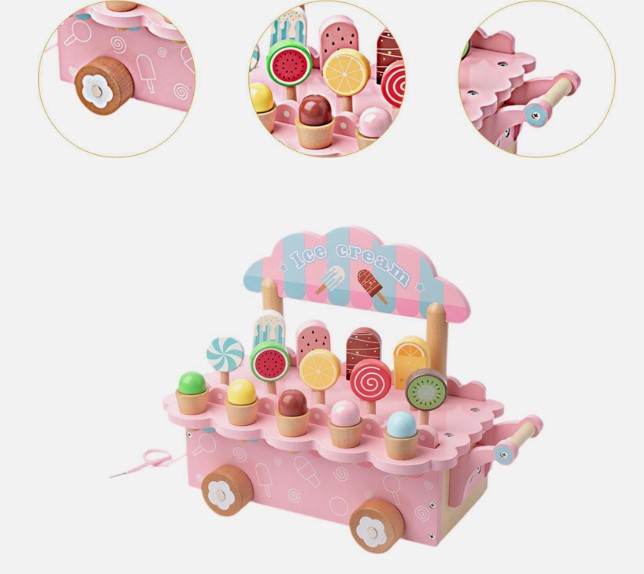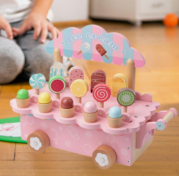 Acest Stand de înghețată din lemn este alegerea ideală pentru copiii de peste 3 ani care adoră să exploreze, să creeze și să interacționeze. Potrivit atât pentru joc individual, cât și pentru joc în grup, oferind o experiență educativă și distractivă în același timp.