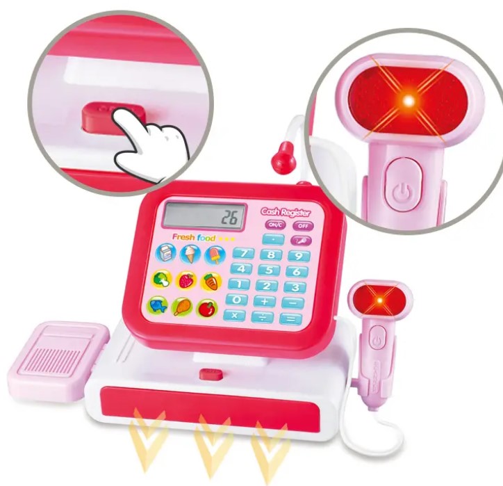 - Sunete și lumini realiste: Simulează perfect funcționarea unei case de marcat adevărate.