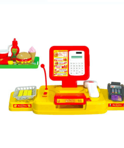 Casa de marcat de jucarie de la fast-food cu microfon, scanner, POS si marfa.