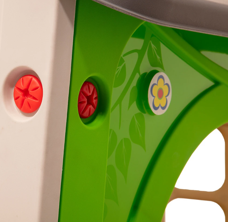 – Design captivant: Casuța are un design atrăgător, cu culori vesele și detalii adorabile. Copiii vor fi atrași imediat de această casuță, iar când vor intra înăuntru, vor porni într-o aventură plină de imaginație și joacă.