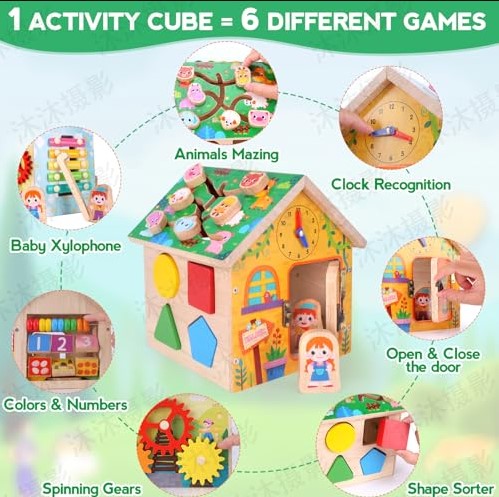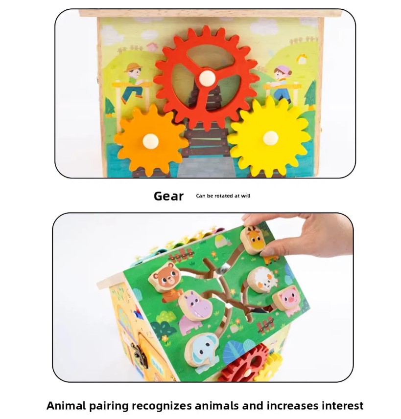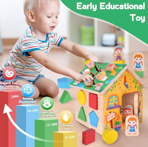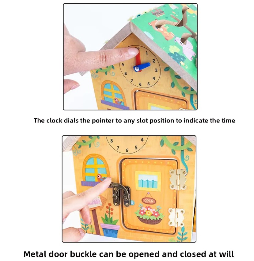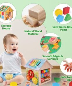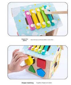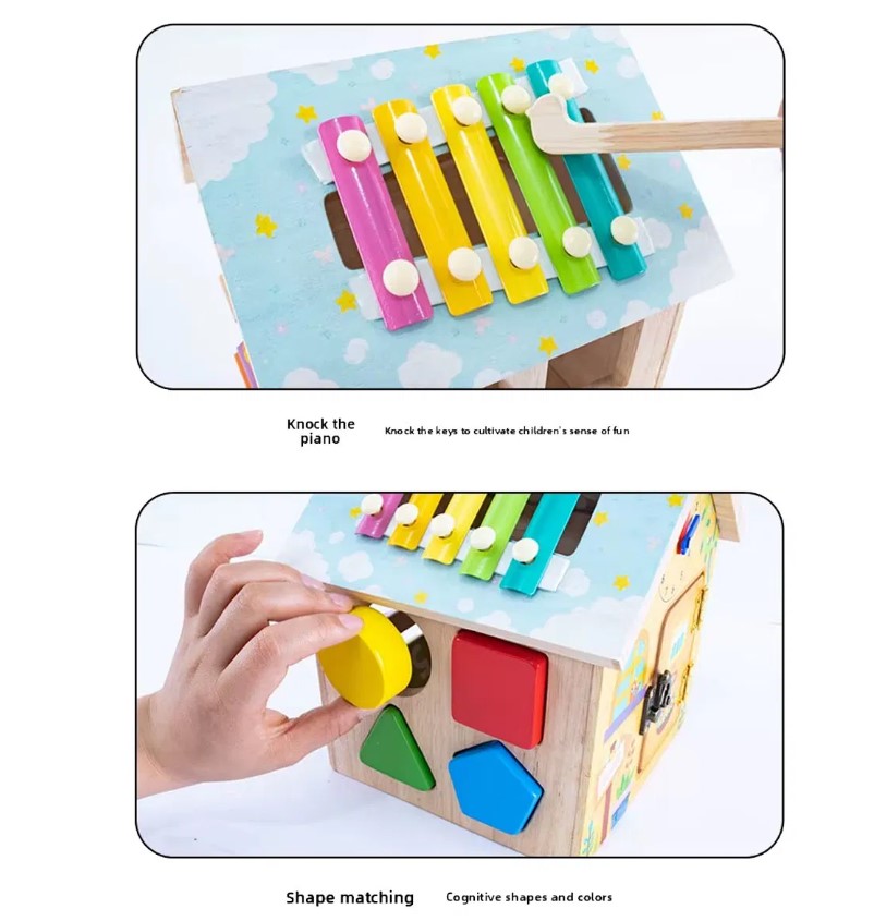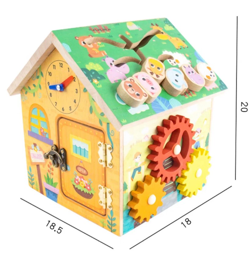 Căsuța educațională Montessori 8 în 1 este o jucărie complexă și interactivă, realizată din lemn de calitate, sigură pentru copii, menită să stimuleze dezvoltarea cognitivă, motrică și senzorială prin joc. Designul colorat și detaliile atractive îi vor capta atenția copilului, transformând fiecare activitate într-o experiență educativă plăcută.