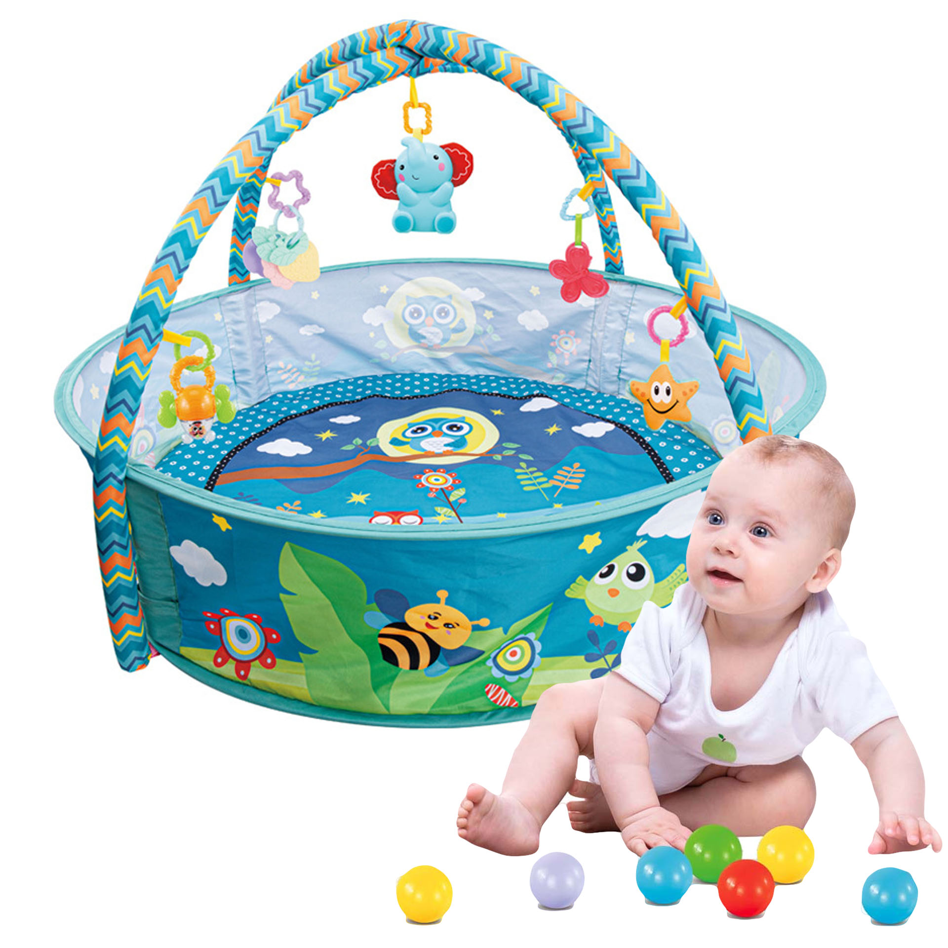 Centru activități bebeluși – Saltea cu arcadă, piscină și 15 bile colorate, 0 luni+