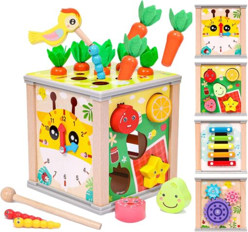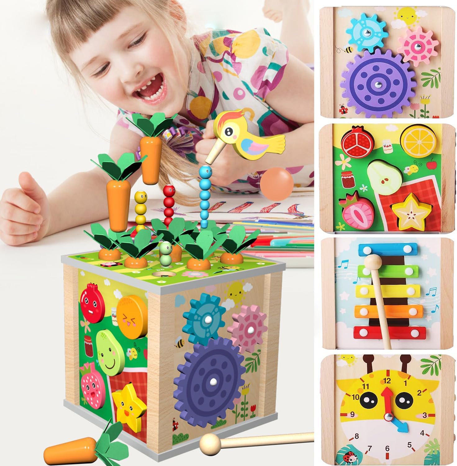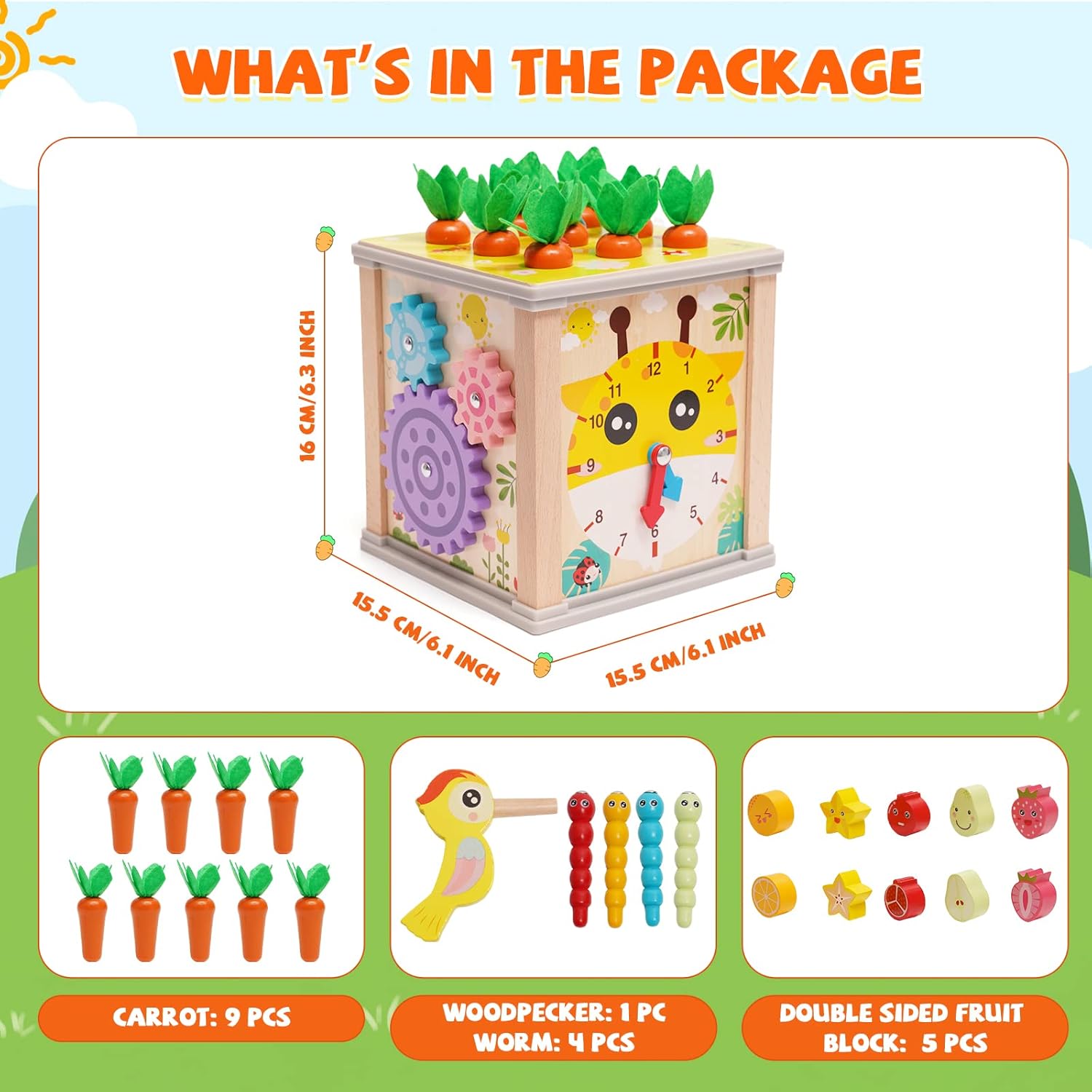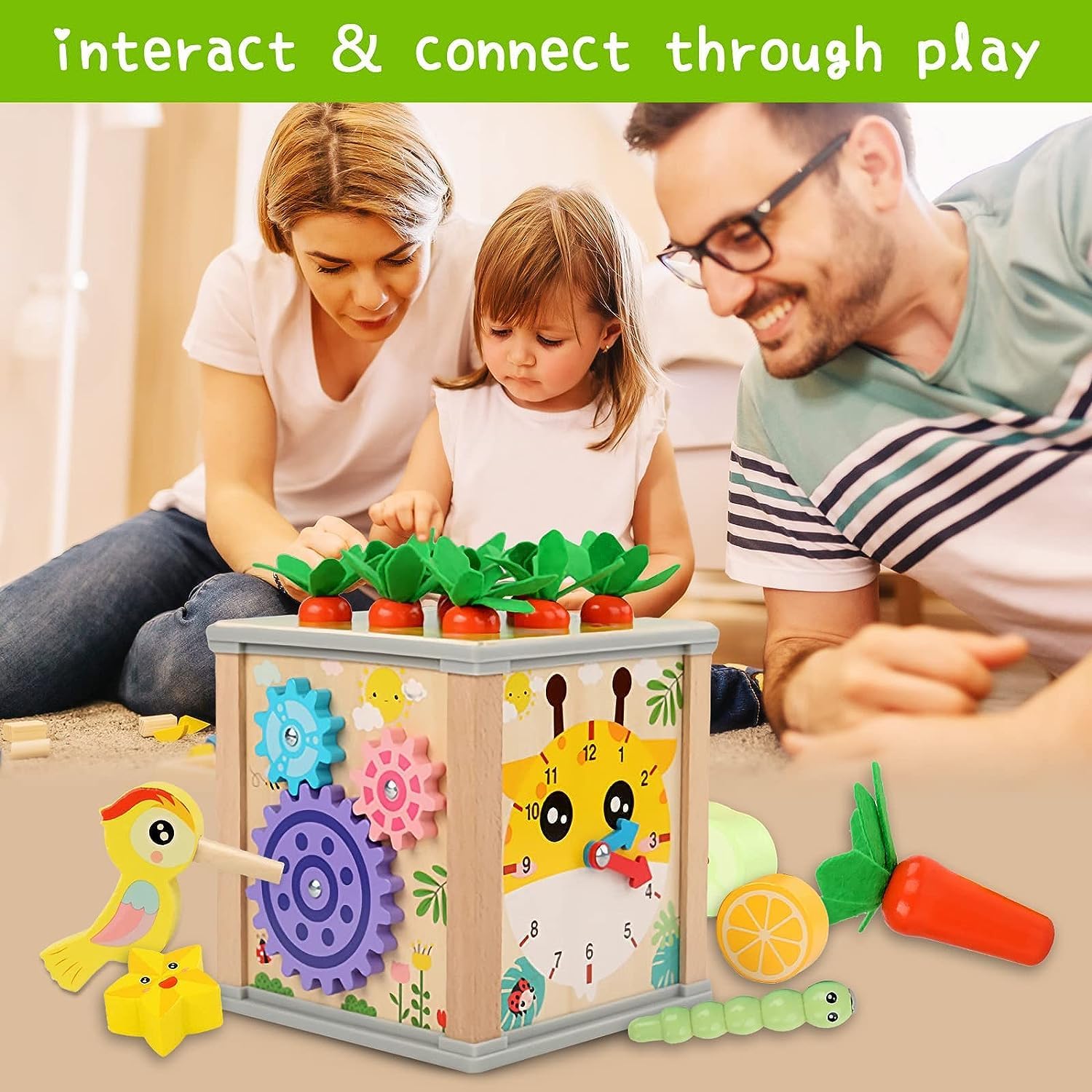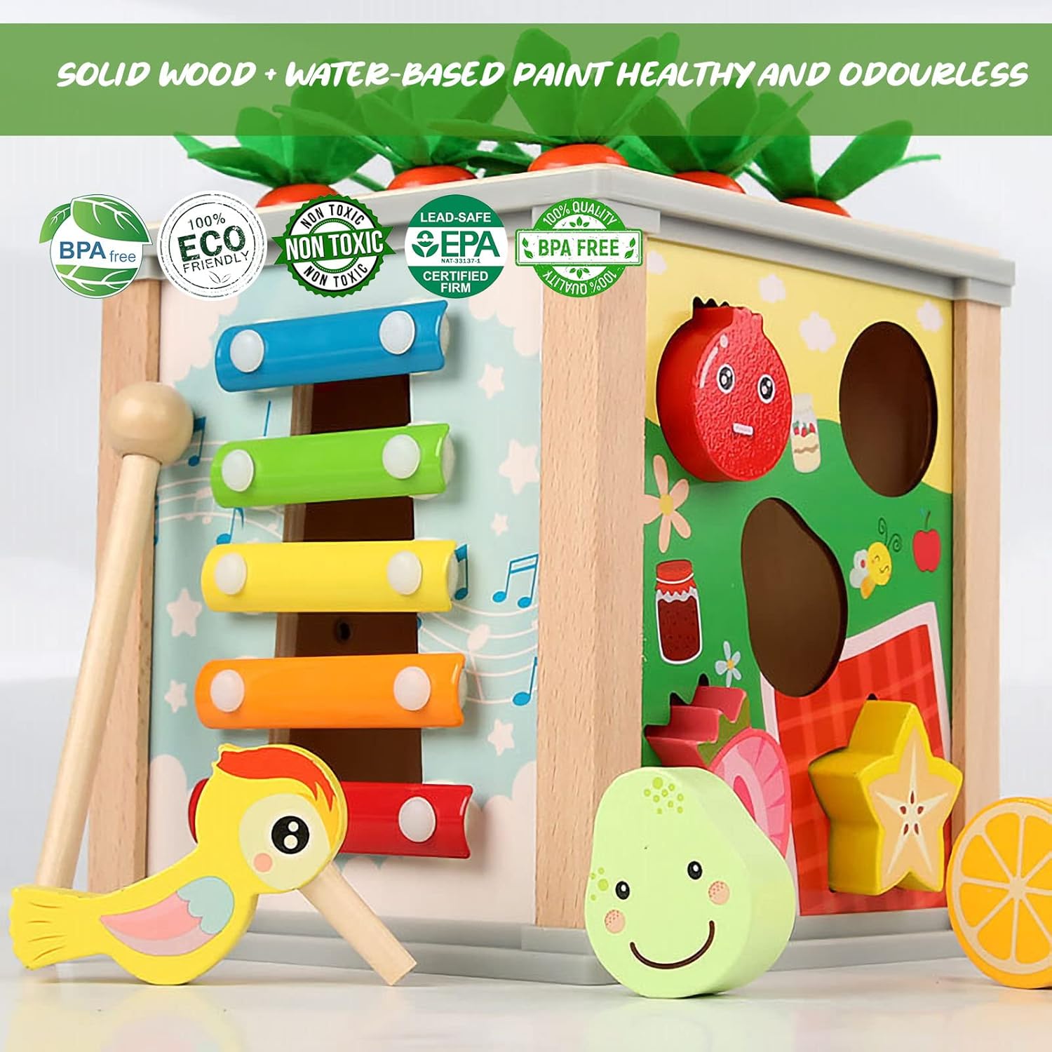 Produsul este un centru de activități educative 7 în 1, destinat copiilor mici pentru a stimula dezvoltarea intelectuală și motrică într-un mod distractiv. Acest centru este realizat din lemn și are un design colorat și atractiv, fiind fabricat cu vopsea pe bază de apă, non-toxică și sigură pentru copii.