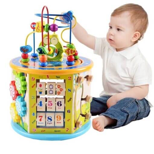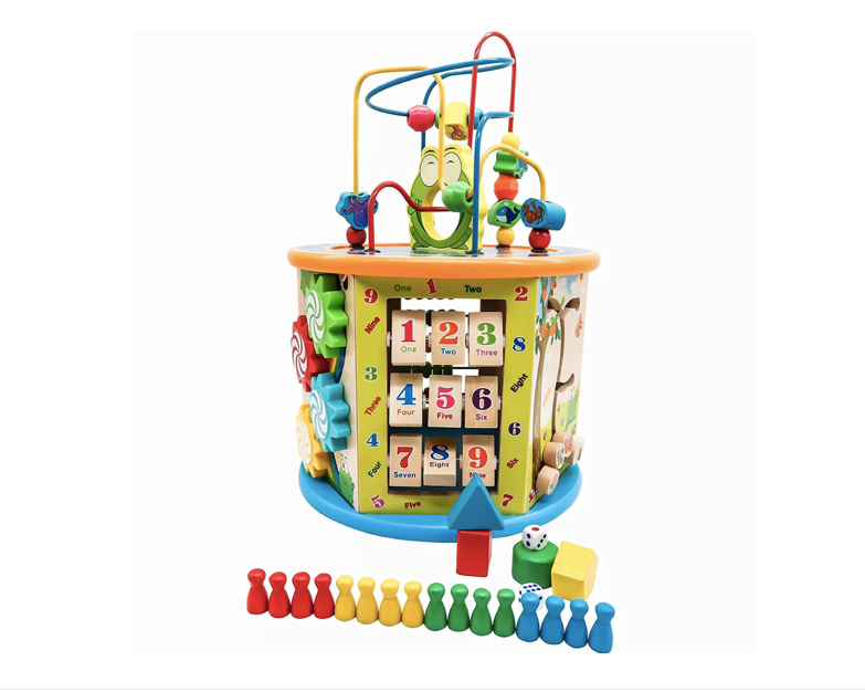 Cubul educativ din lemn 8 in 1 este un centru multifunctional de activitati, foarte indragit de copii prin coloristica si prin multitudinea de activitati special concepute pentru captarea atentiei celor mici.
