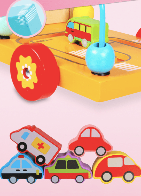 In loc de parbriz avem o numaratoare cu functii si calcule matematice si nu in ultimul rand avem un circuit montessori cu margele, masinuta si obiecte