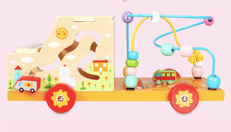 Centru de activitati bebelusi Camion din lemn – jucarie educativa, motrica si senzoriala bebelusi.