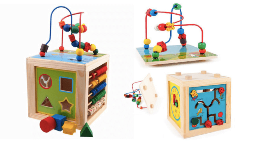 Jucaria educativa Montessori pentru bebelusi si copii cu varsta de pana la 3 ani sau chiar mai mult, ii va tine ocupati pe cei mici, fiind sigura. Cubul este fabricat din lemn si vopsit cu substante non-toxice.