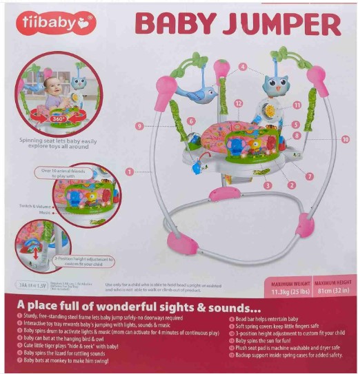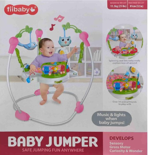 Dezvoltare senzorială: luminile colorate și sunetele interactive sunt activate prin sărituri sau lovituri ușoare, stimulând auzul, vederea și coordonarea bebelușului.