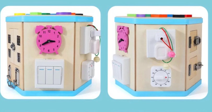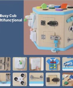 Acest centru educativ multifuncțional este un adevărat atelier de descoperire și învățare pentru copiii de la 3 ani în sus. Inspirat din principiile pedagogiei Montessori, cubul hexagonal oferă 14 activități practice menite să stimuleze motricitatea fină, coordonarea mână-ochi, gândirea logică și autonomia copilului.
