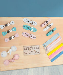 - Fermoare și curelușe: Ideal pentru dezvoltarea abilităților practice și a coordonării mână-ochi.