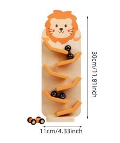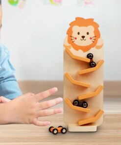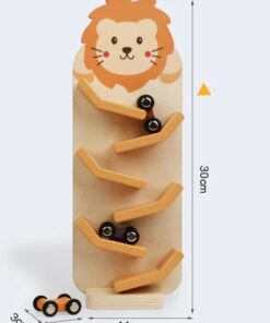 Cu un design prietenos și atractiv, înfățișând un leu vesel, circuitul captează atenția celor mici și îi invită să se joace ore întregi. Mașinuțele din lemn coboară rapid pe traseu, stimulând curiozitatea și oferind o experiență vizuală captivantă.