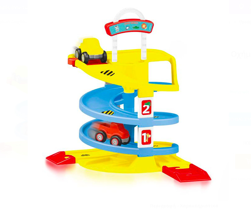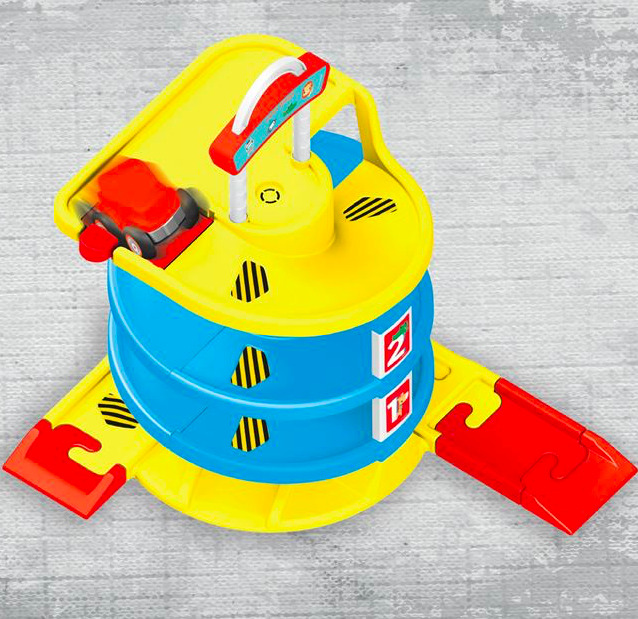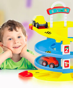 Pista de raliu are trei etaje colorate, pozitionate in asa fel incat in momentul in care una din masinutele incluse in pachet este pozitionata pe prima pista, ea va incepe miscarea, continuand sa mearga pe urmatoarele etaje, pana jos, cu viteza.