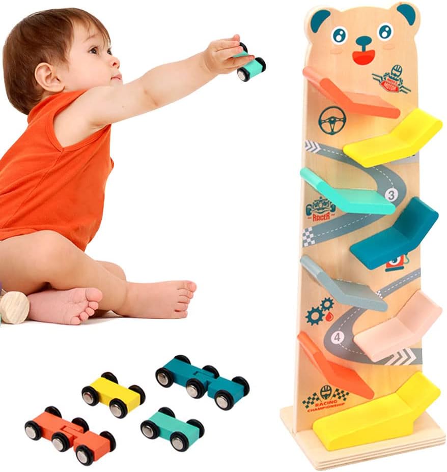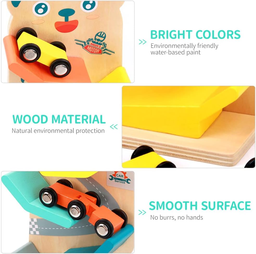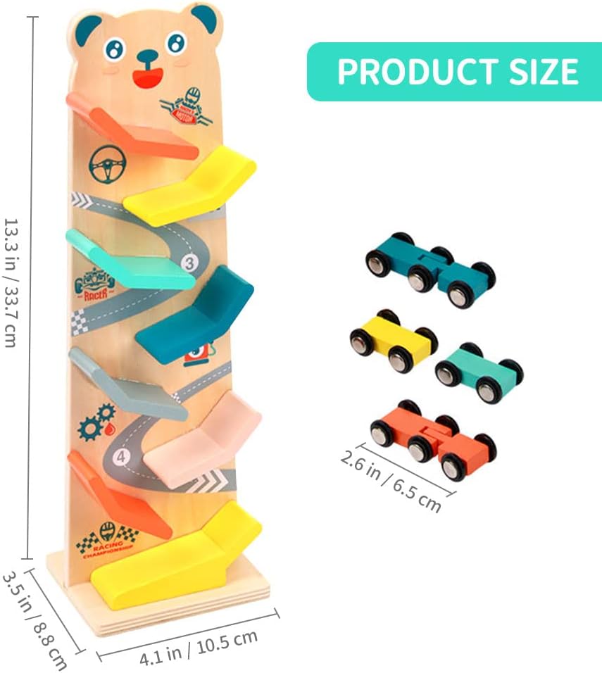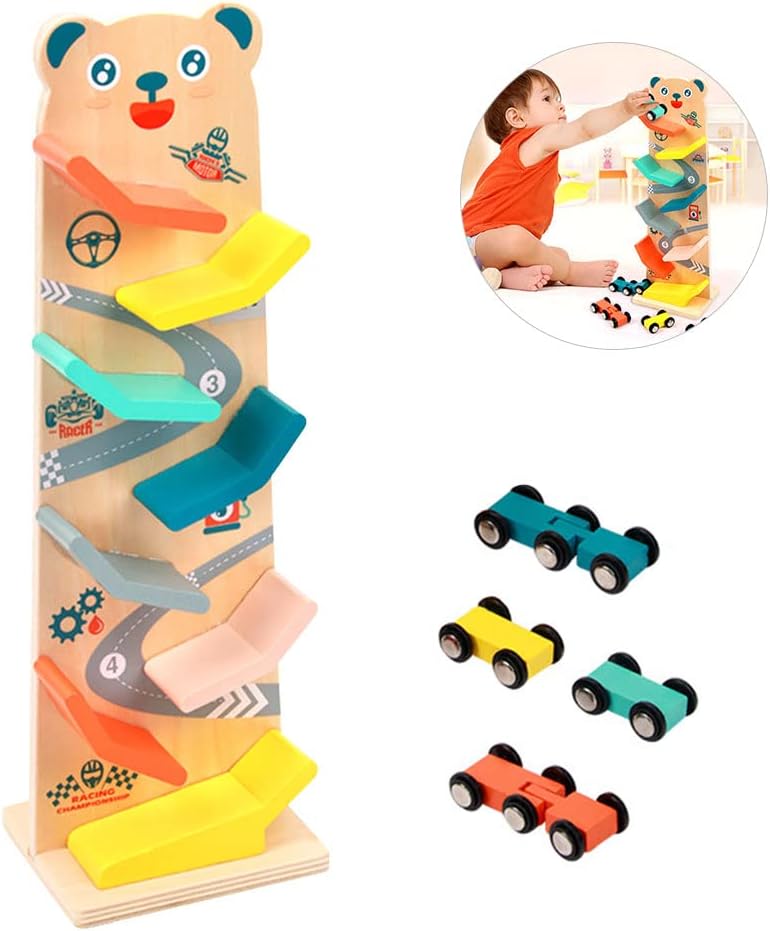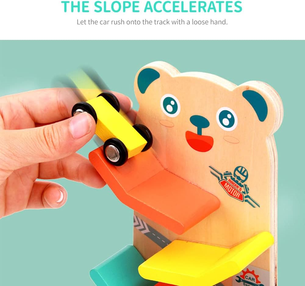 Acest circuit contine 4 masinute din lemn, care aluneca gravitational din varf spre baza, pe un circuit tot din lemn, stimuland astfel atentia si indemanarea copiilor.