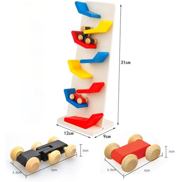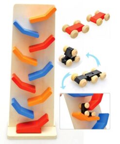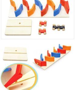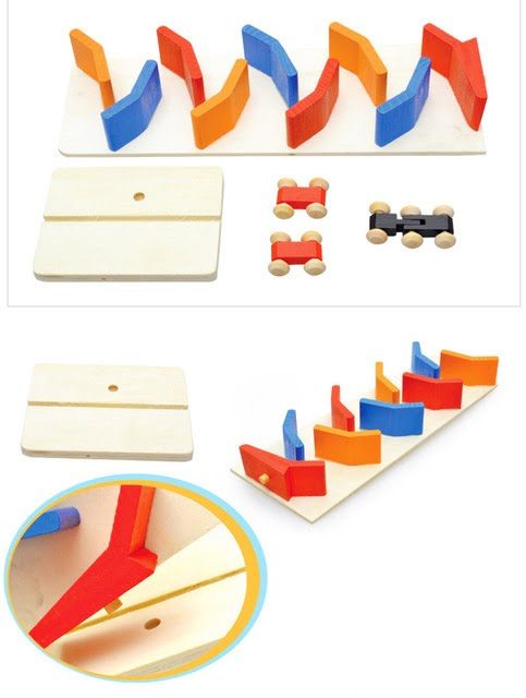 Acest circuit contine 3 masinute din lemn, care aluneca gravitational din varf spre baza, pe un circuit tot din lemn, stimuland astfel atentia si indemanarea copiilor.