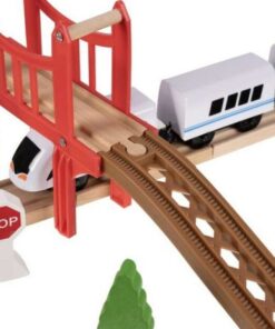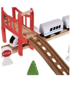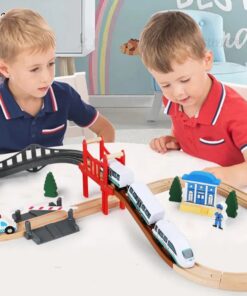 Circuitul cu trenuleț electric este o jucărie educativă clasică, creată pentru a încuraja imaginația, coordonarea și gândirea logică a copiilor. Cu un design realist și detalii colorate, setul include șine din lemn, poduri, semne de circulație, vehicule și figurine care recreează atmosfera unui oraș în miniatură.
