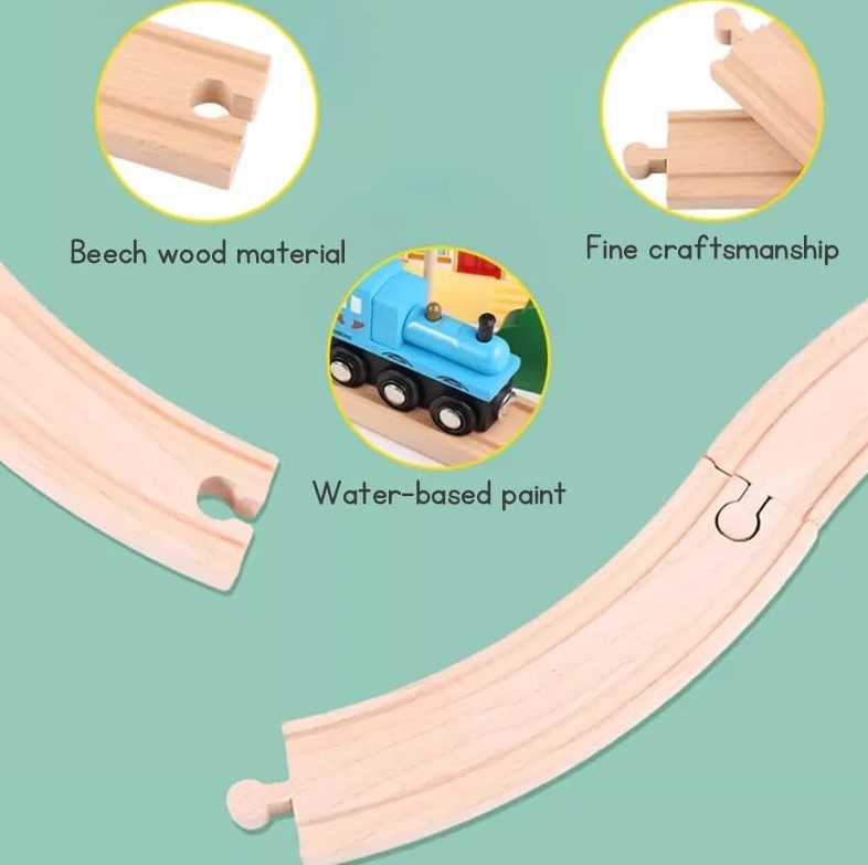 Trenulețele se conectează prin magneți, fiind ușor de manevrat de către copii, iar piesele mari, viu colorate, dezvoltă creativitatea și imaginația. Materialele sunt vopsite cu culori pe bază de apă, sigure pentru copii și rezistente la uzură.