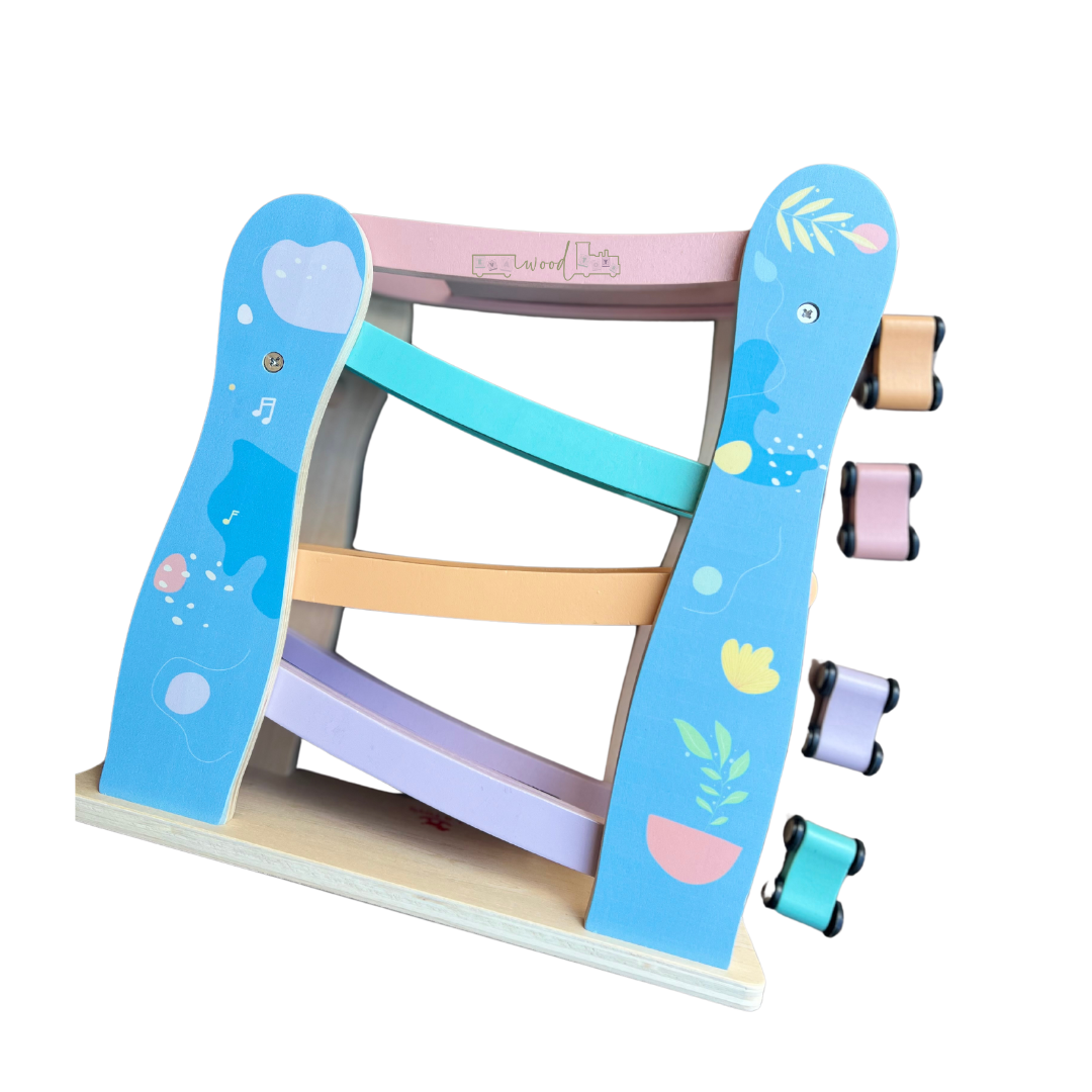 Masinutele vor porni din partea superioara a rampei si se vor deplasa pe cele trei piste colorate, asezate in cascada, pana la capat, prinzand viteza, spre deliciul si incantarea micutilor care vor urmari amuzati cursa.