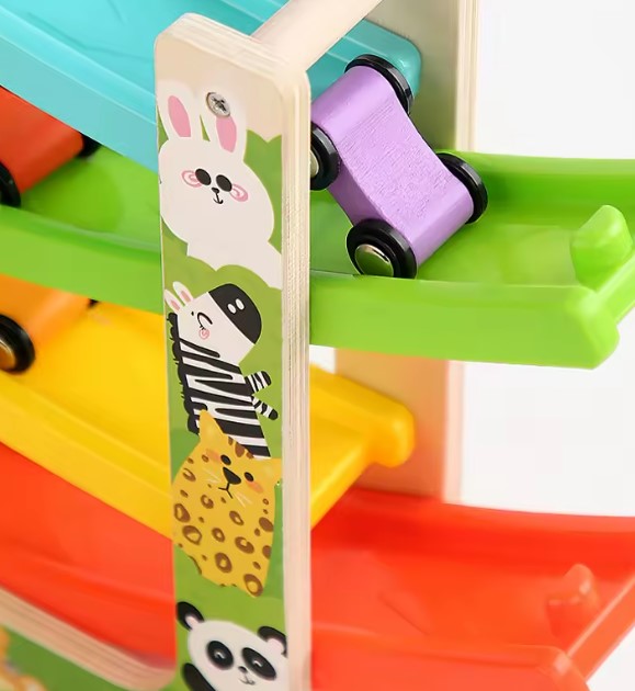 Un joc captivant care îmbină distracția cu dezvoltarea abilităților motorii! Acest circuit vertical cu 4 rampe colorate și mașinuțe din lemn este perfect pentru copiii de la 3 ani în sus. Piesele viu colorate, personajele simpatice din grădina zoologică și dinamica jocului fac din acest set o alegere ideală pentru jocul individual sau în grup.