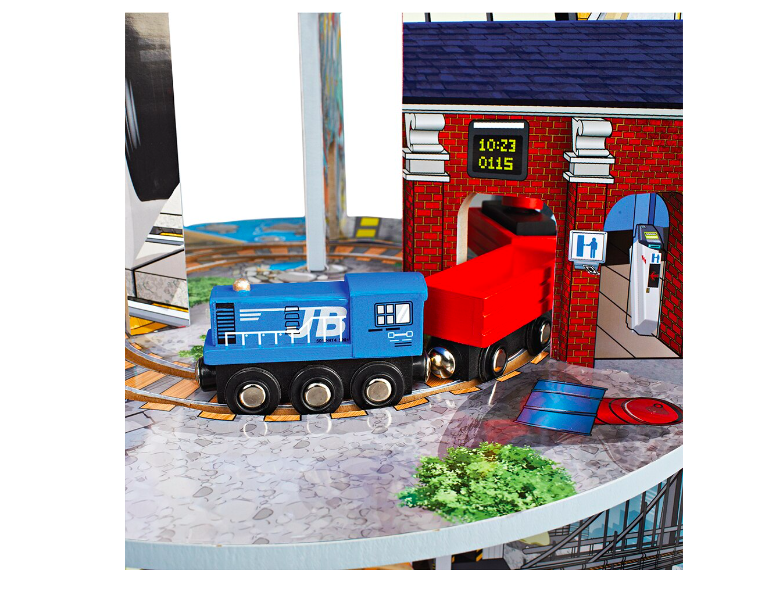 • Set complet: Include trenulețe colorate, vagoane detașabile, o macara funcțională, poduri, tuneluri și chiar o platformă de aterizare pentru elicopter.