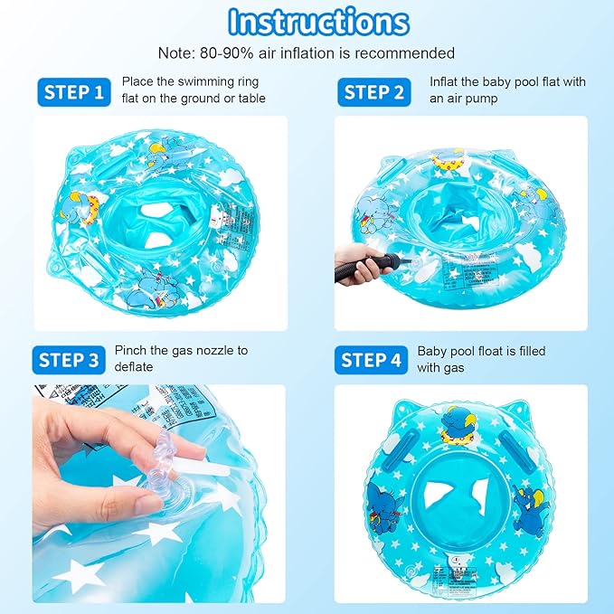 Umflați colacul până la 80-90% din capacitate pentru confort optim.