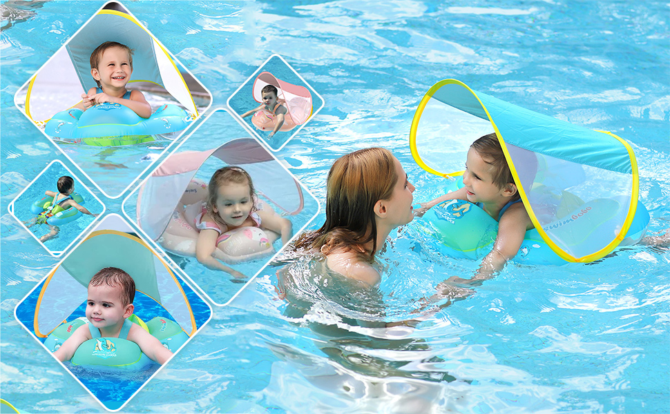 Asigură-te că toate prinderile sunt bine fixate. Apoi introduceți colacul în apă, ținând copilul sub supraveghere.