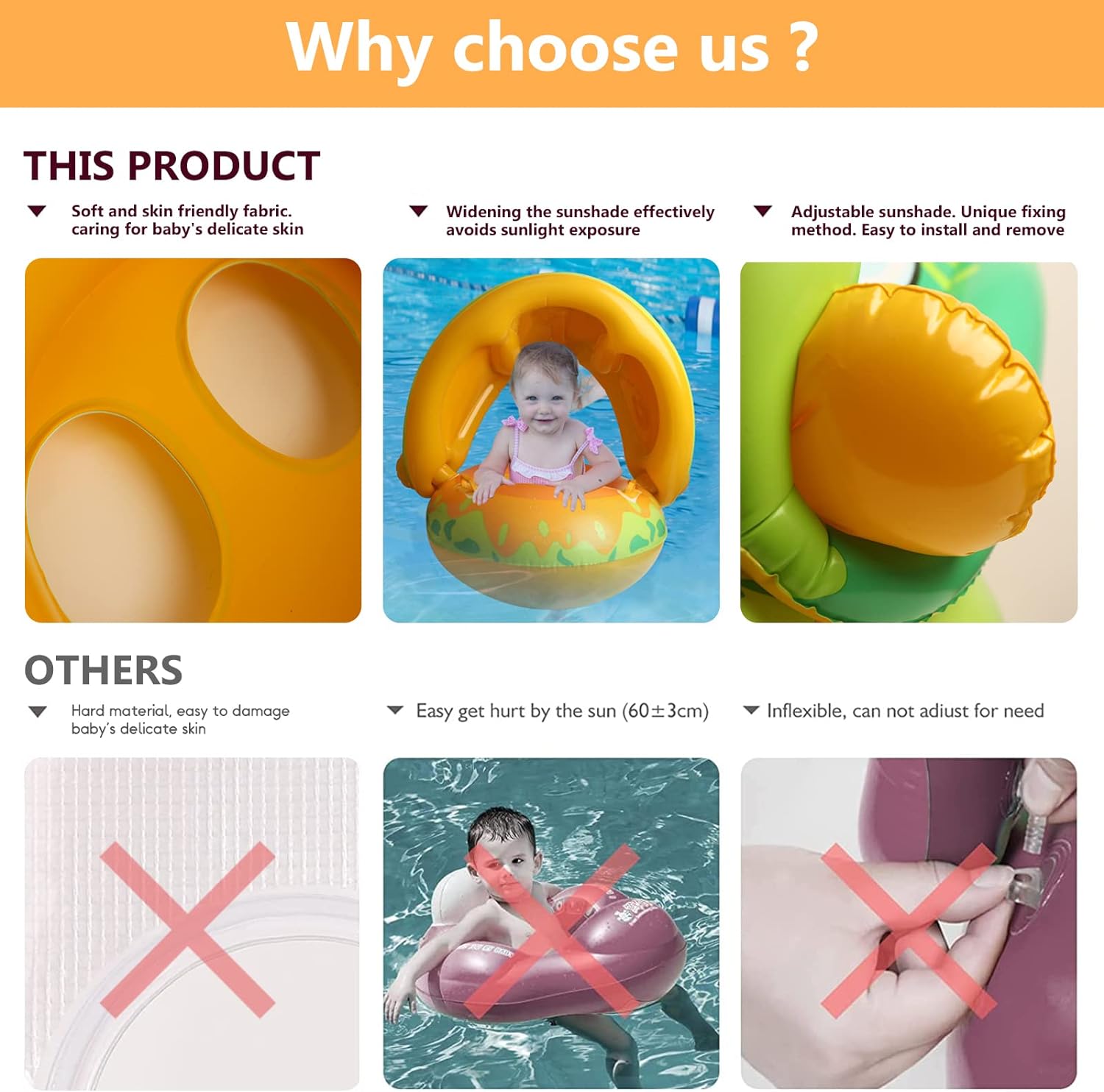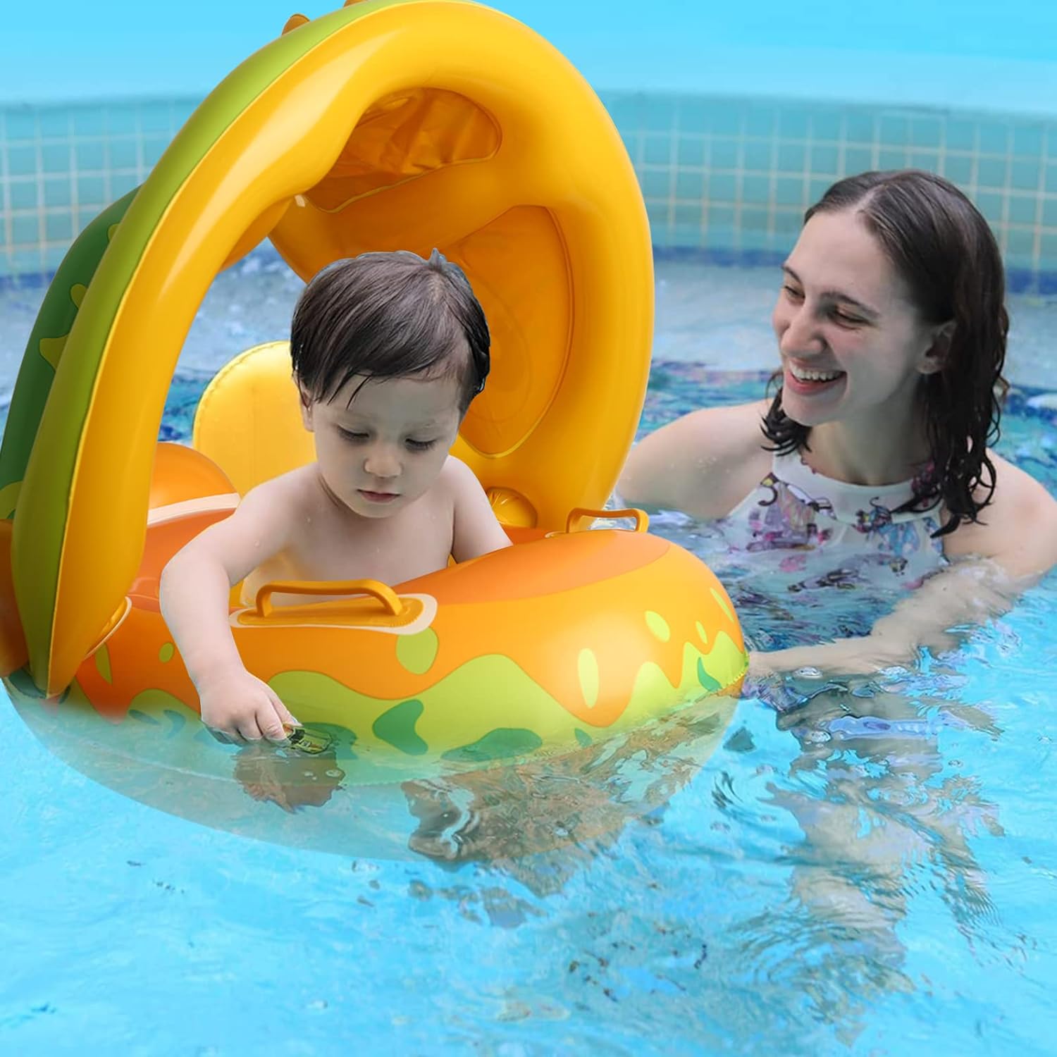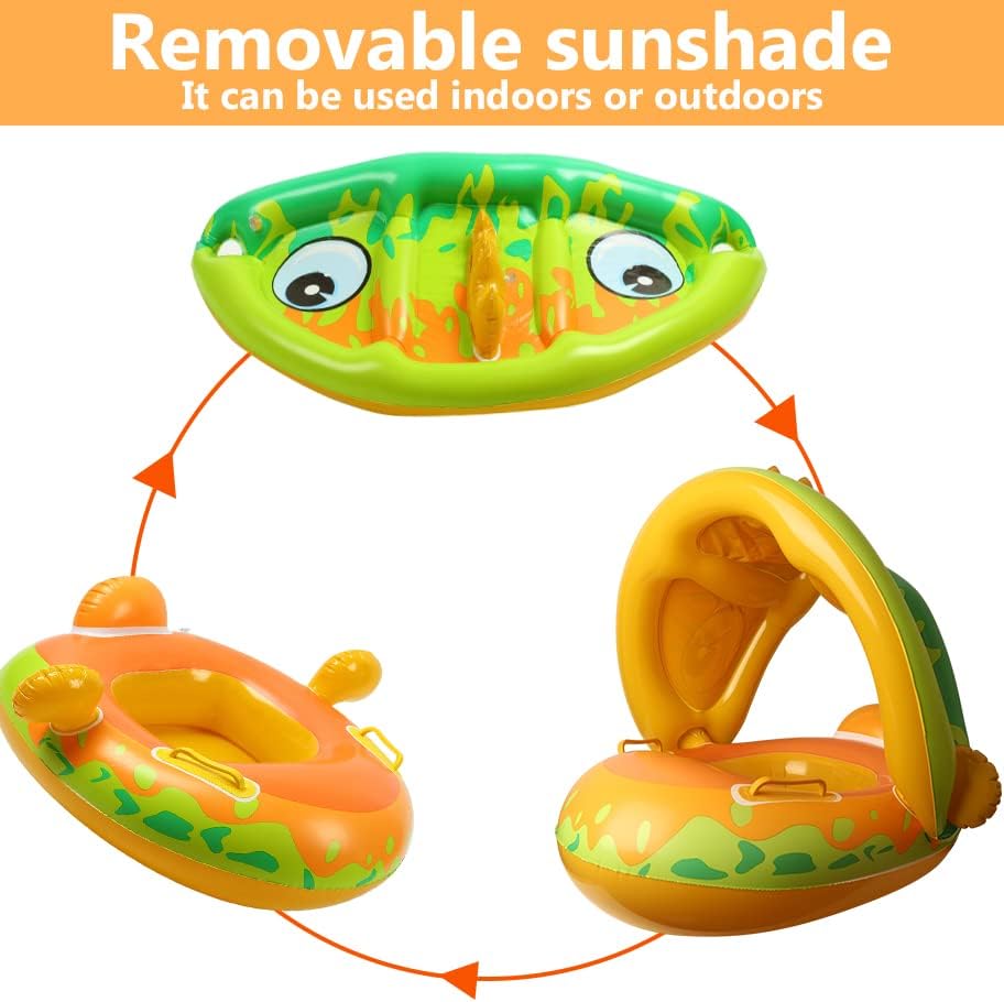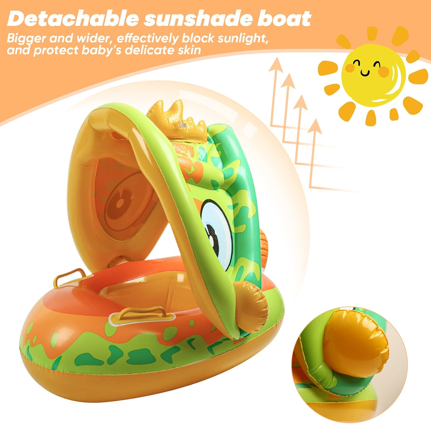 Colac gonflabil tip barcuta pentru copii mici cu parasolar detasabil.