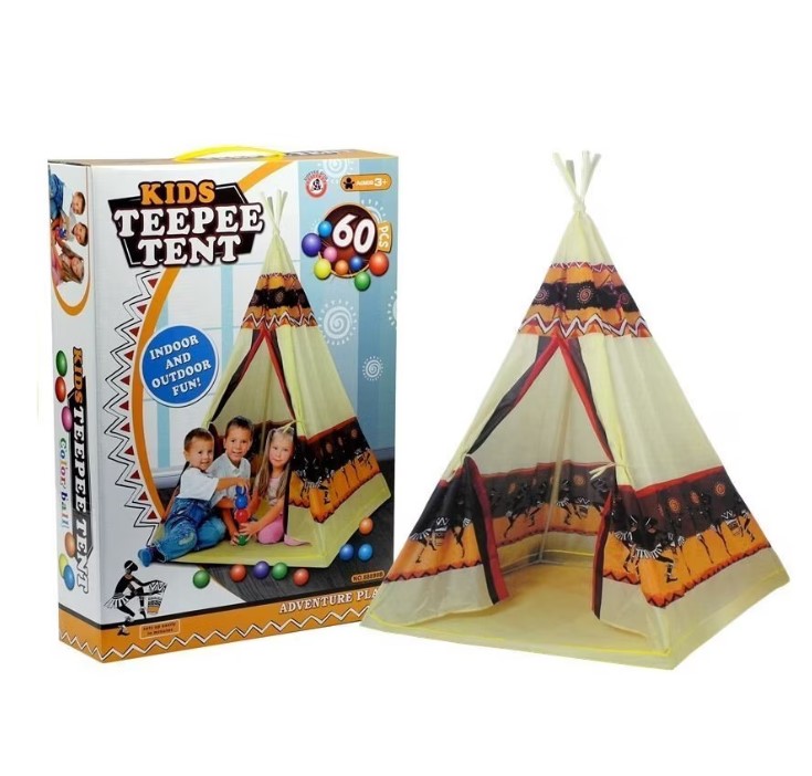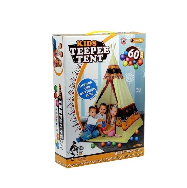 Cort indian pentru copii – Teepee cu 60 de bile colorate, 155 cm înălțime