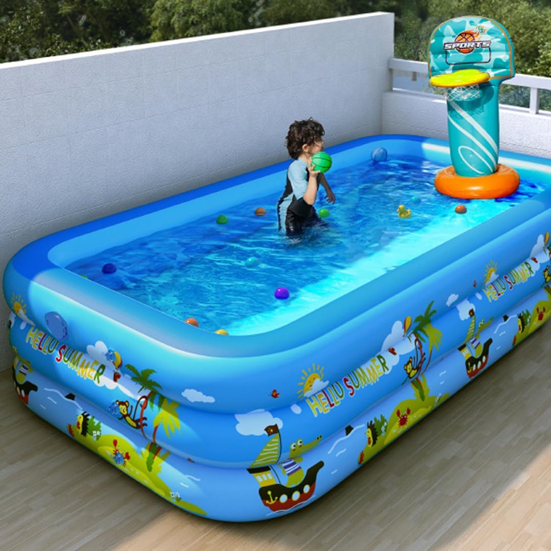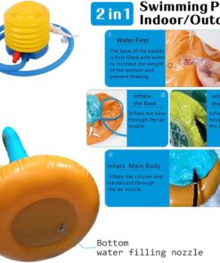 💧 Design 2-în-1: poate fi utilizat în piscină (plutește stabil) sau pe sol (baza se umple cu apă pentru extra stabilitate).