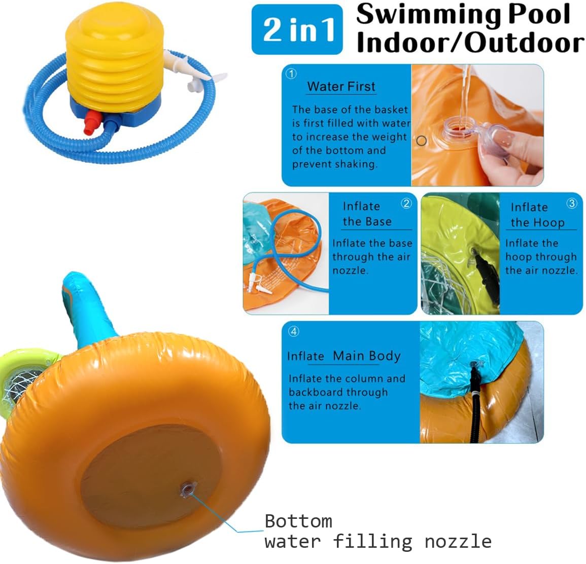 🏀 Accesorii incluse: o minge gonflabilă de baschet (diametru 12,7 cm) și pompă de picior.