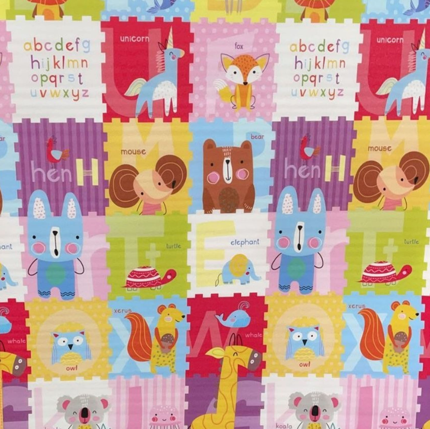 - Pe ambele parti are desene distractive si educative, cu literele alfabetului, fiind produs dintr-un material specific termoizolant.