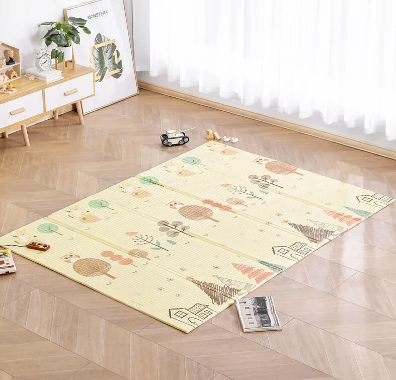 - Covor pliabil cu doua fete XPE si imprimeuri vesele, 200 x 180 cm.