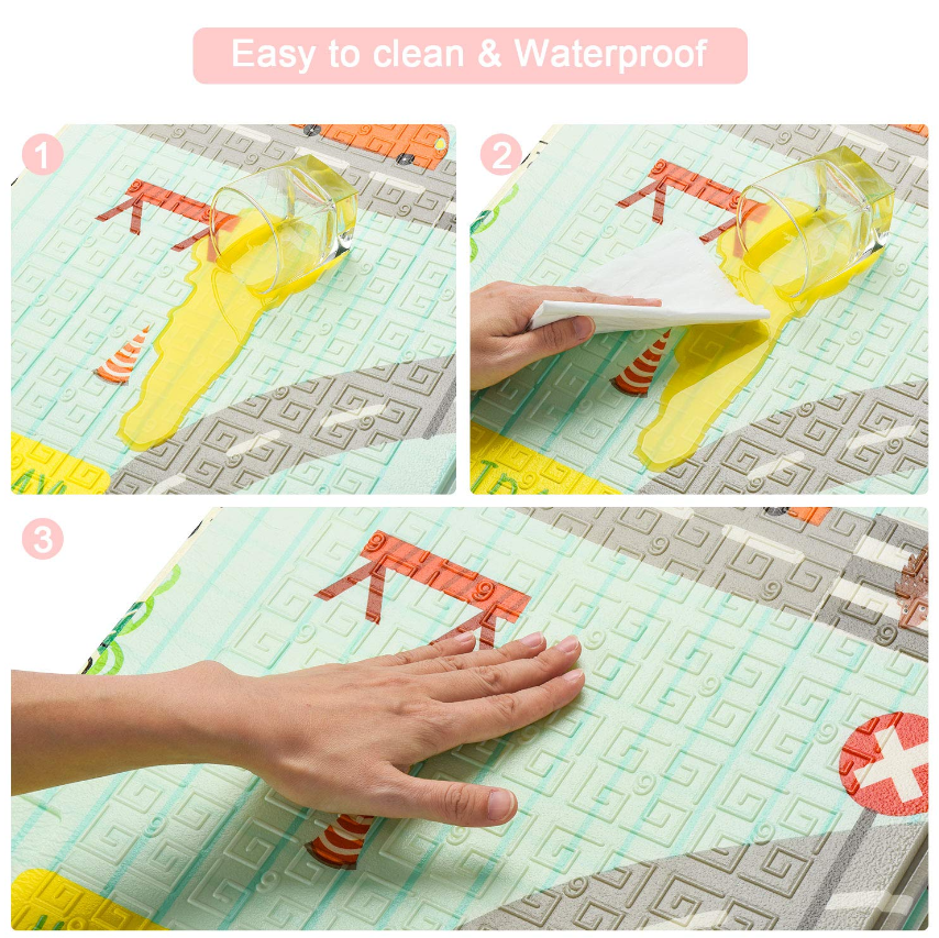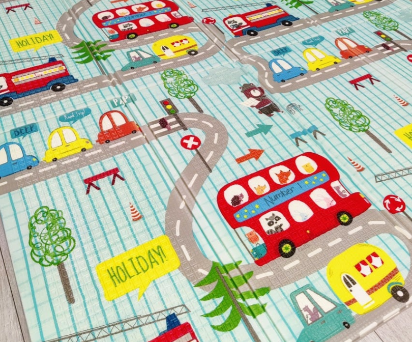 Covorasul de joaca este gros, pliabil, din spuma, cu 2 fete, pentru bebelusi.
