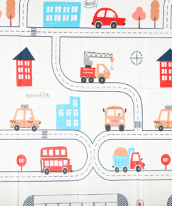 Transformă spațiul de joacă într-o aventură plină de culoare și veselie cu acest covor termoizolant cu două fețe, ideal pentru dezvoltarea copiilor mici. Pe o parte, personajele adorabile precum elefantul, girafa și hipopotamul creează o atmosferă de sărbătoare, iar pe verso, traseul urban plin de mașinuțe și clădiri îi încurajează pe cei mici să exploreze lumea orașului.