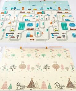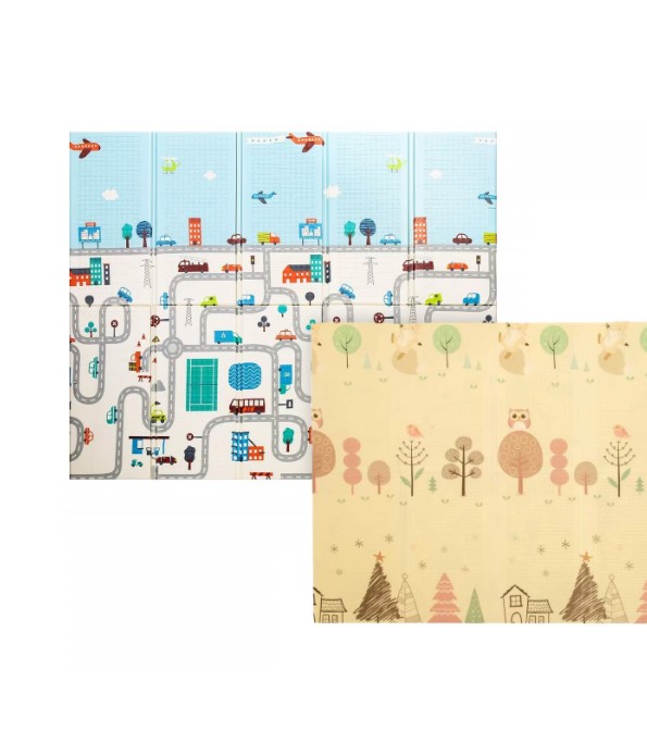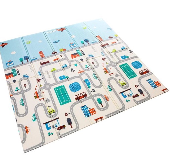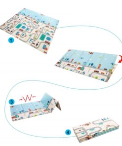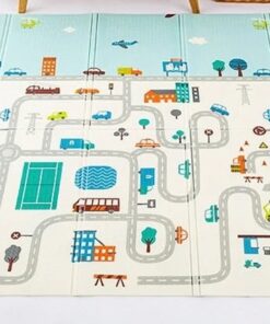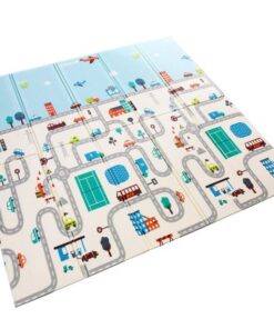 Covor pliabil de joacă termoizolant cu două fețe – Model Orășel – 200 x 180 x 0.8 cm