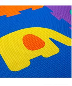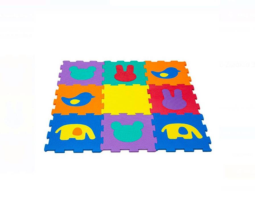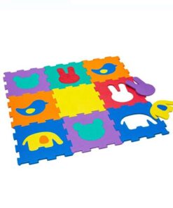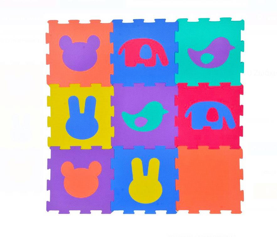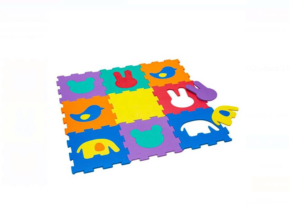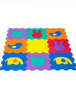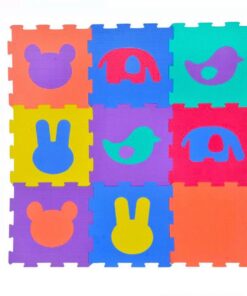Puzzle de podea cu piese spumoase colorate, care se potrivesc ca un puzzle și formează o suprafață confortabilă pentru joaca sigură pentru copii. Cu desene de animale care educă și distrează copilul.