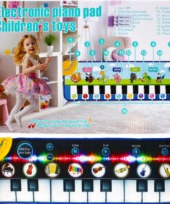 Copiii pot reda melodii simple prin apăsarea clapelor, pot selecta diferite instrumente sau pot înregistra și reda propriile compoziții muzicale. Covorașul este pliabil, ușor de depozitat și confecționat din materiale rezistente, moi și sigure pentru copii.