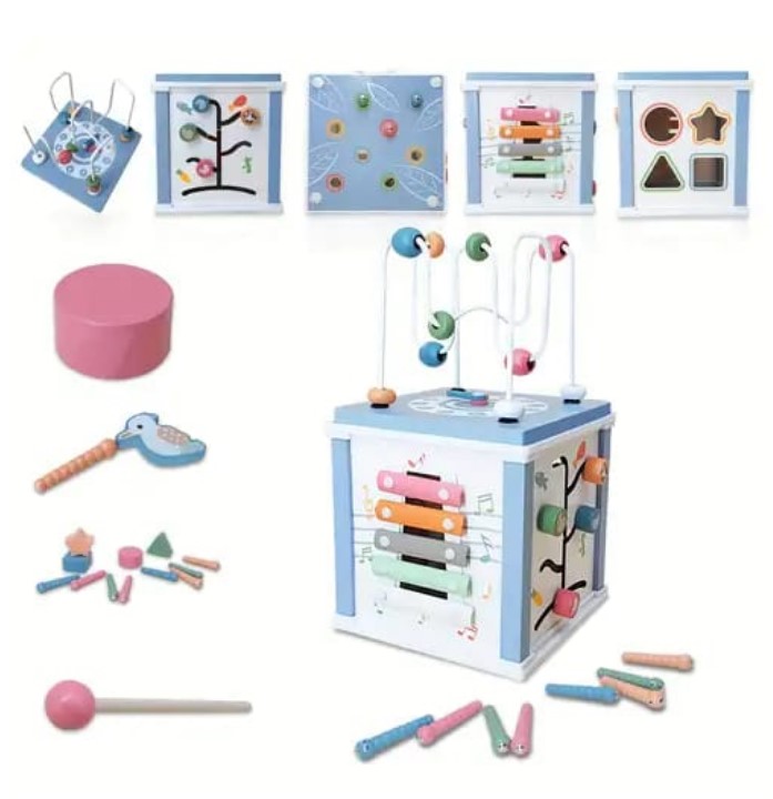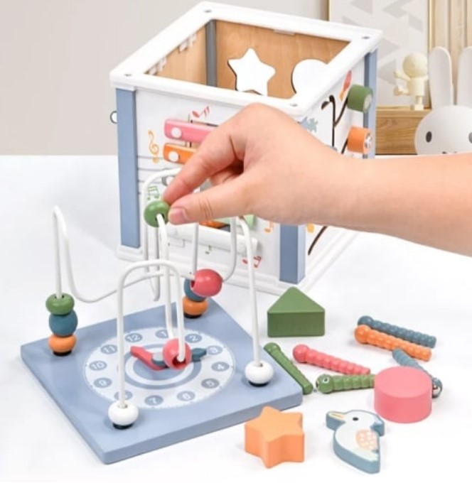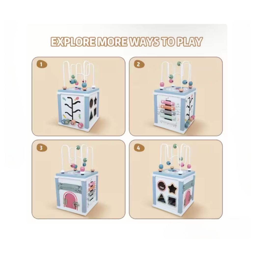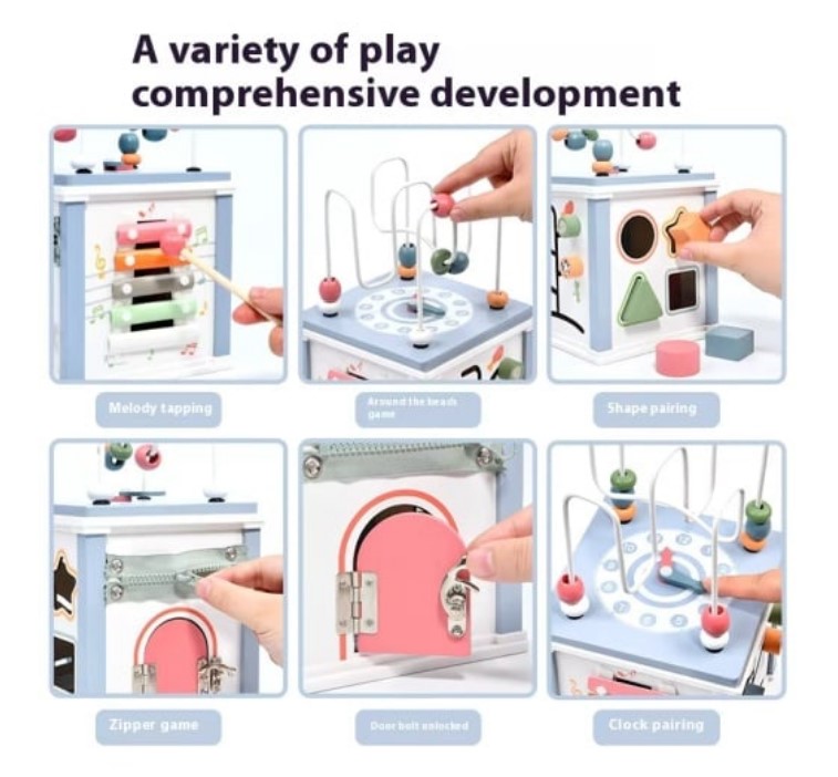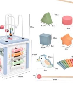 Este o jucărie educativă completă și versatilă, care oferă 10 moduri de joacă într-un singur produs, economisind spațiu și oferind copiilor o experiență de învățare complexă. Ideal ca jucărie Montessori pentru copii de la 3 ani+.