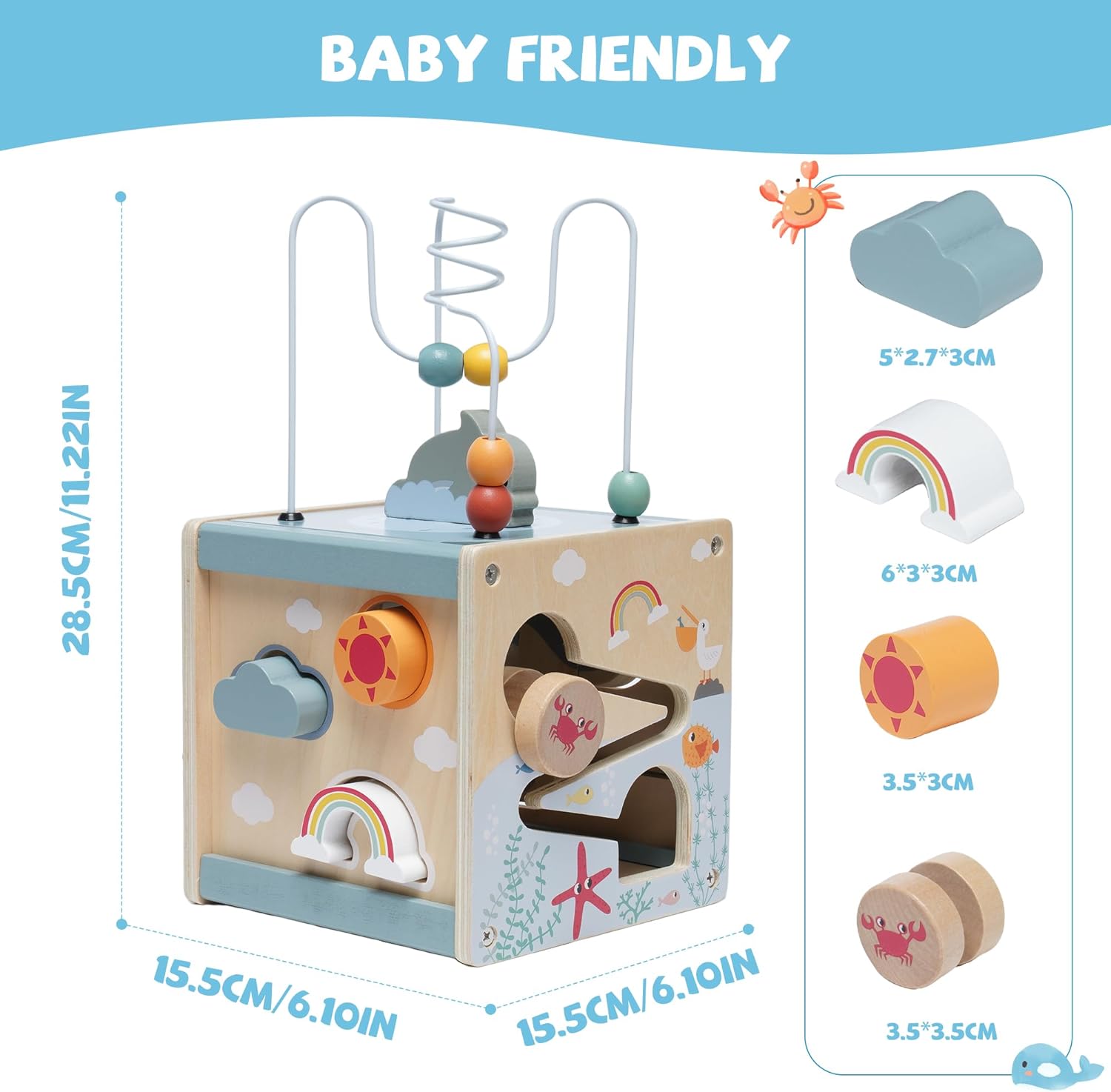 Cub Educativ bebe, din lemn cu 6 in 1 activitati, 12 luni+, Kabi