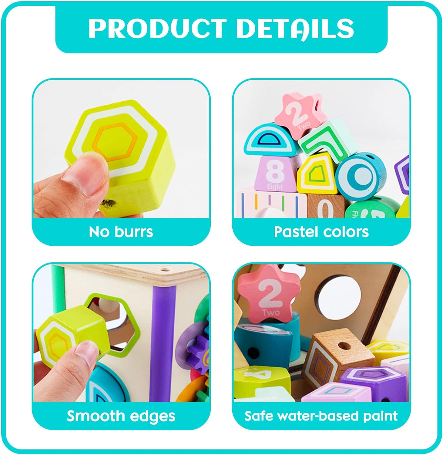 INCURAJEAZĂ DEZVOLTAREA – cubul este vopsit in culori frumoase, vii, care stimulează imaginația copilasilor și le stimulează creativitatea. Jocul cu un cub interactiv este, de asemenea, un exercițiu de abilități manuale și de coordonare mână-ochi.