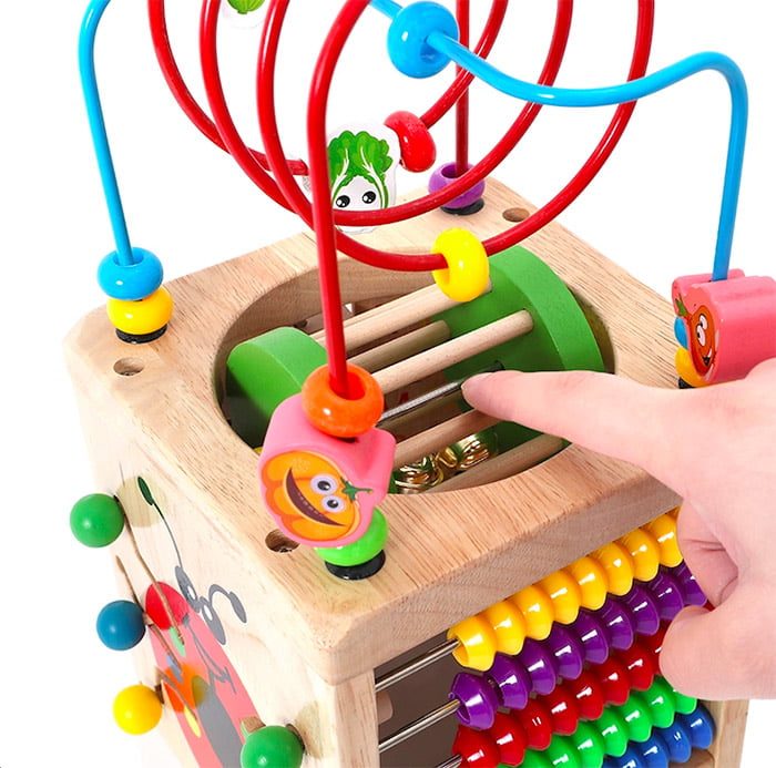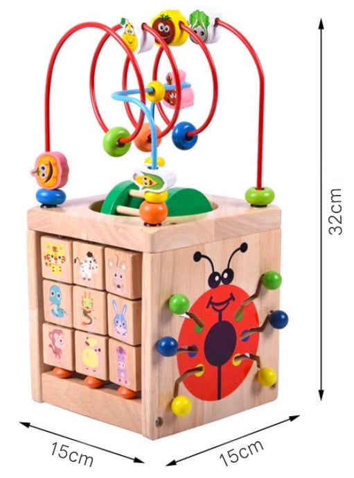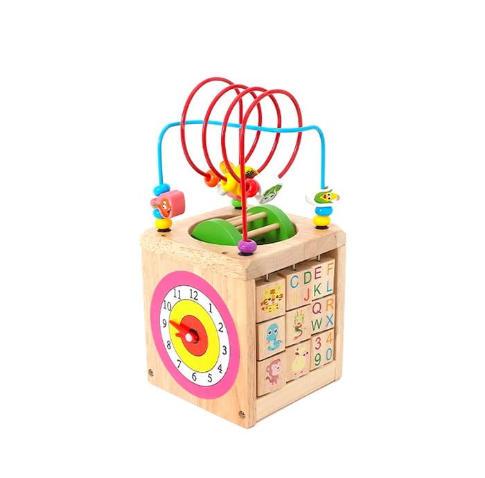 Cubul centru de activitati este o jucarie din lemn educativa pentru bebelusi, avand cate o activitate pe fiecare fata a sa.