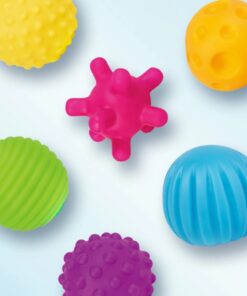 Conține 6 mingi tactile colorate, cu texturi și forme diferite