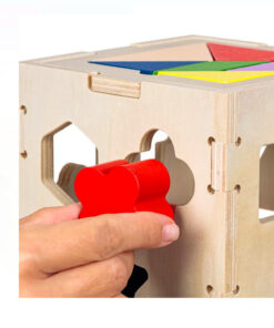 Jucându-se cu sortatorul de lemn, copilul învață formele de bază și, cu ajutorul unui părinte, poate învăța să le numească.