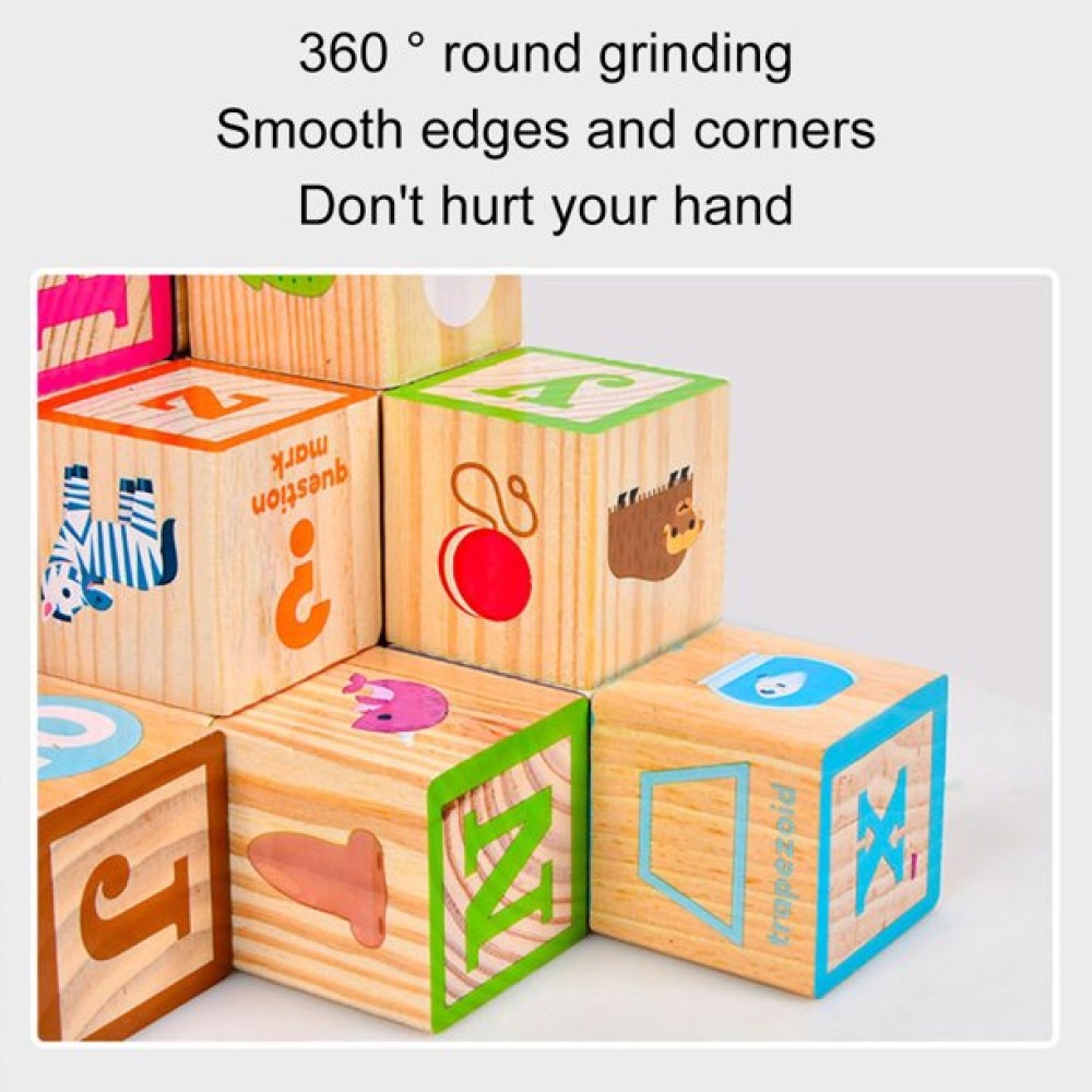 Set 26 cuburi din lemn, litere, cifre animale, obiecte, 18 luni+