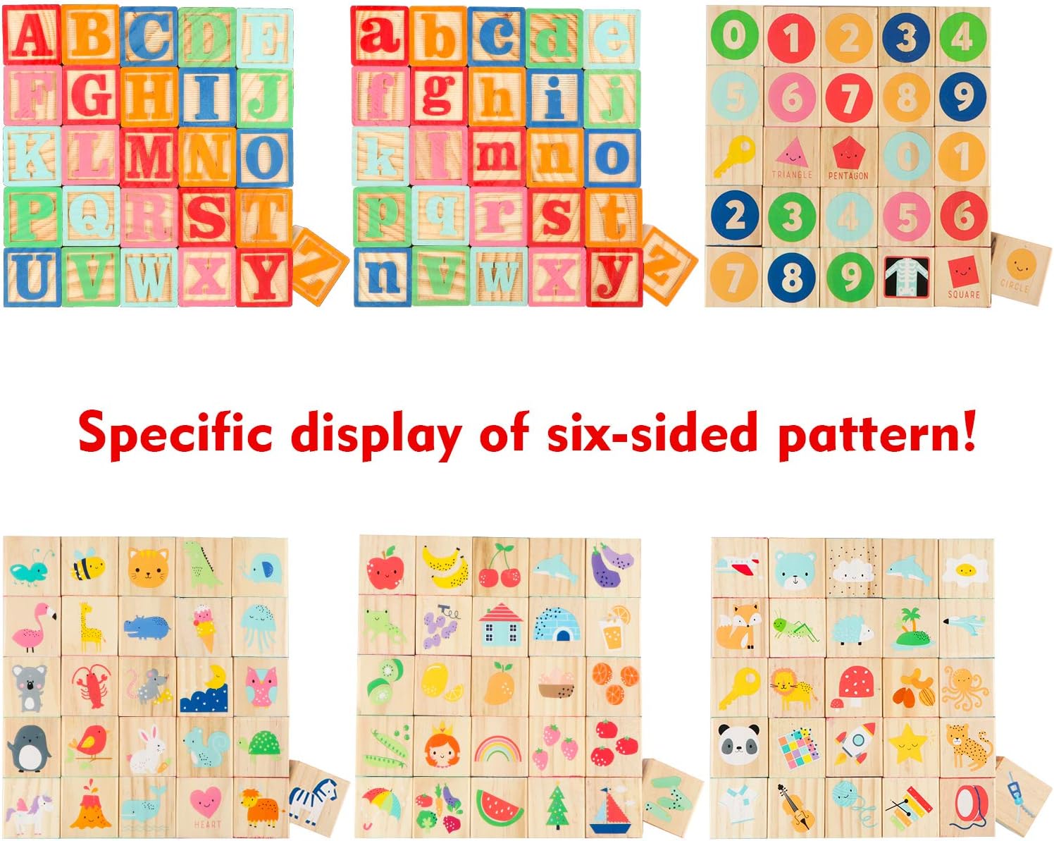 Cuburi Montessori din lemn pentru copii, 18 luni+: Litere, cifre, alfabet, animale și obiecte – joc educativ, tactil si interactiv.